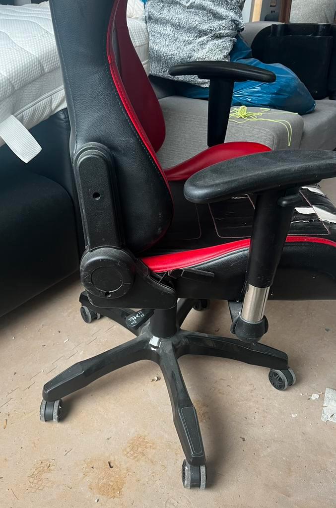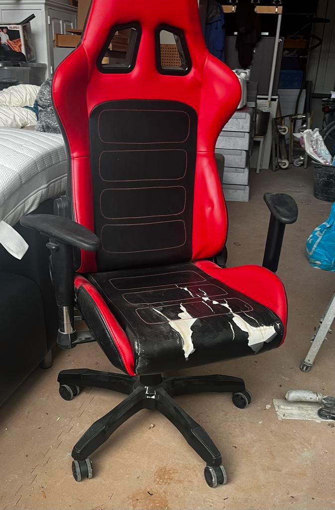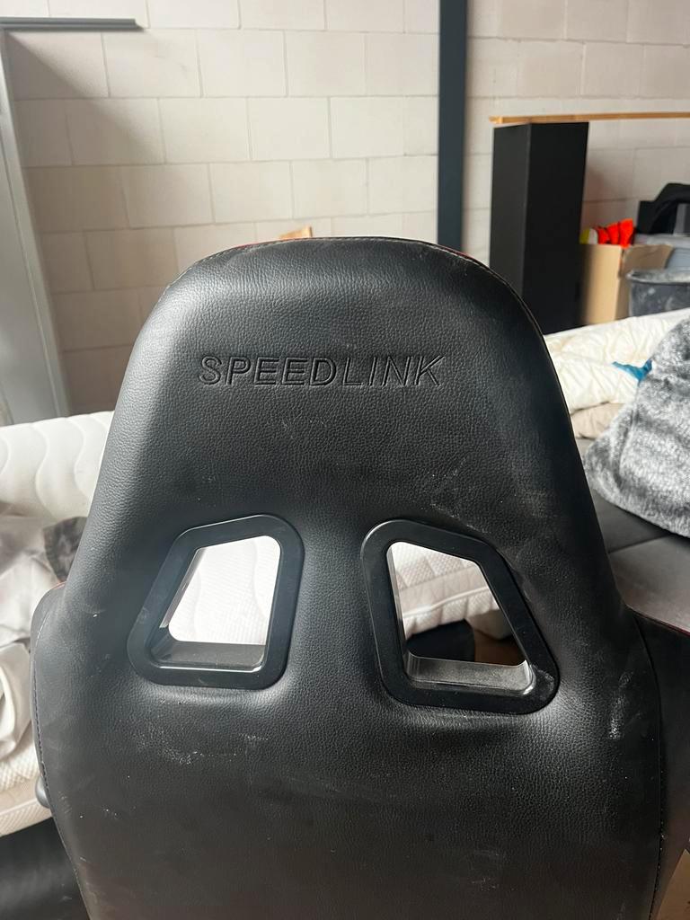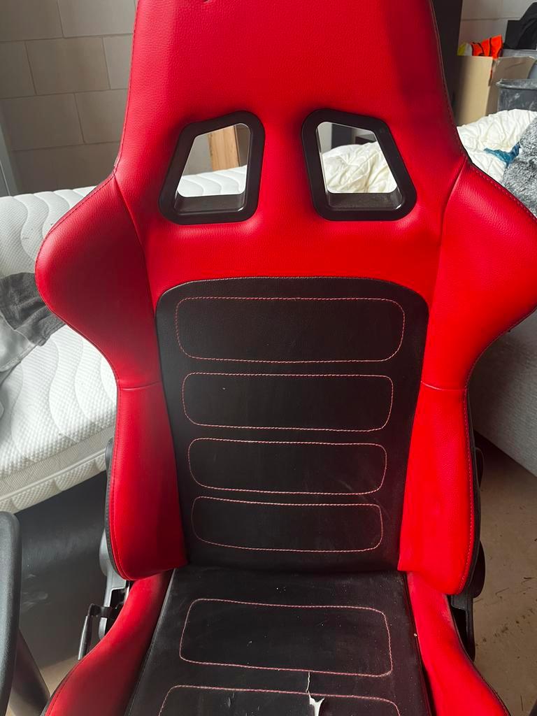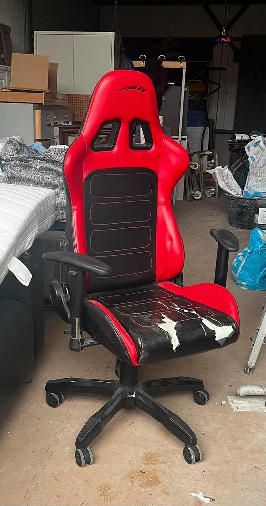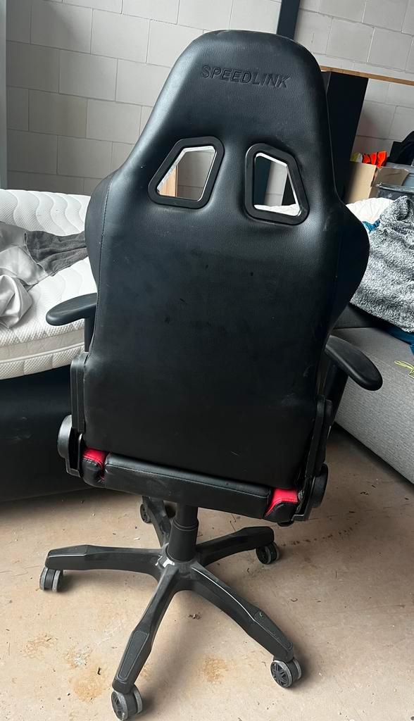 Gamingstoel van speedlink staat zie foto’s. Met een deken erop zie je het niet en zit nog prima 😁