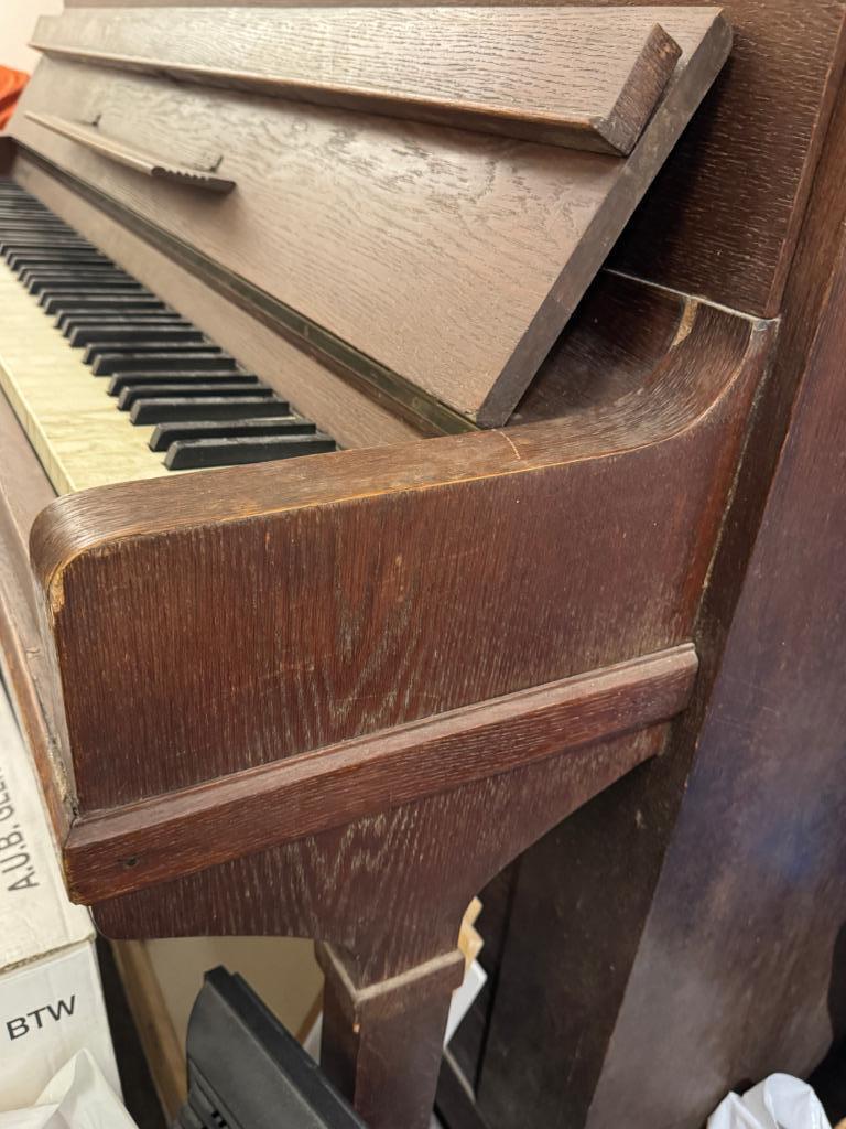 Grote oude upright piano (gratis) gebr. Neumeyer 149 cm breed 130 cm hoog 65 cm diep de piano moet gestemd worden en een toets ger