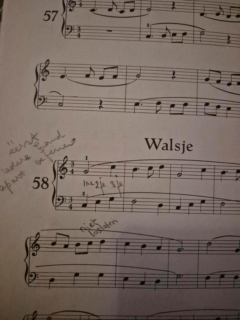Oud exemplaar van ''ons tweede pianoboek'' van ber joosen. Het boek is flink gebruikt en er is in geschreven, zoals te zien