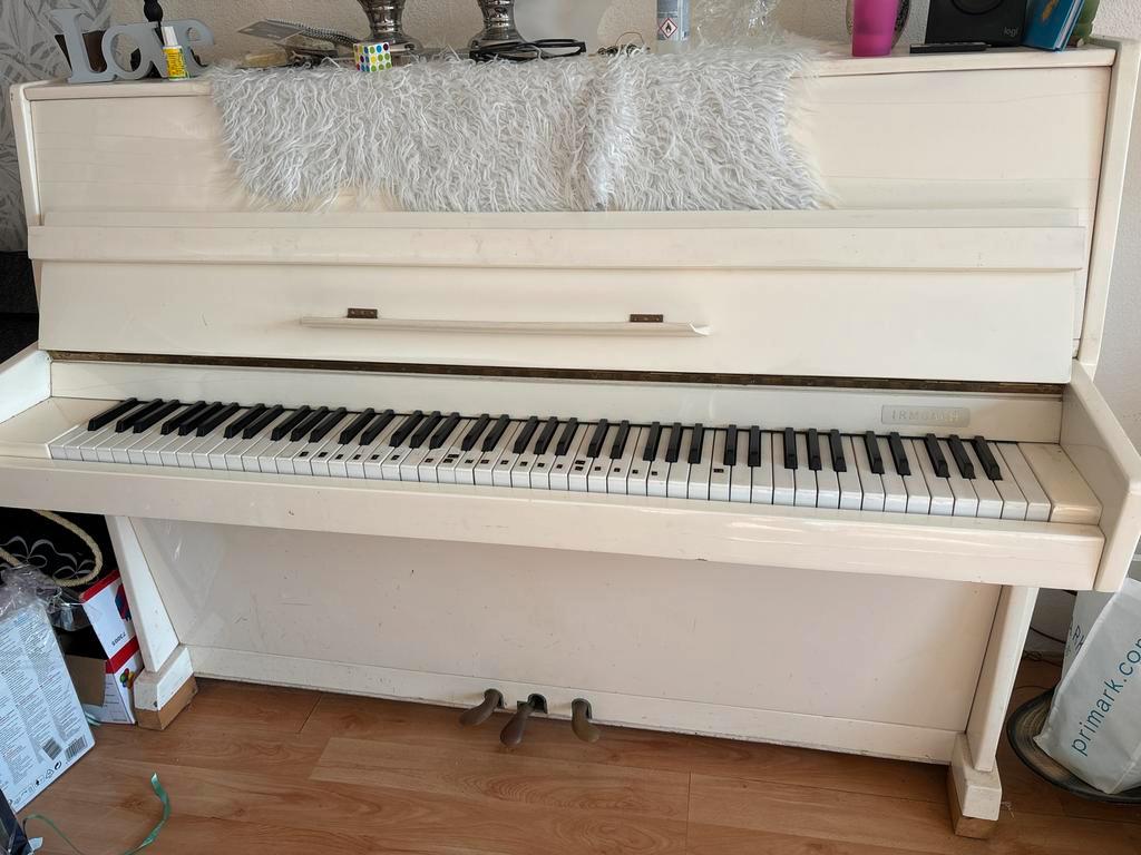 Mooie witte piano – irmbach in goede staat en weinig gebruikt. Perfect om op te oefenen, ideaal voor kinderen of beginners. De pia