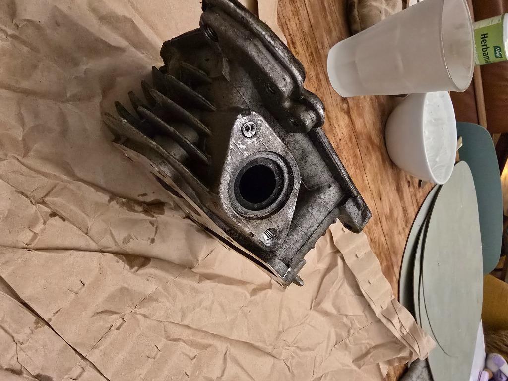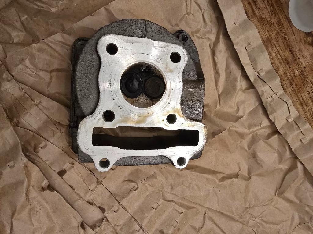 Cilinderkop voor een gy6 50cc motorblok. Lange kleppen er is een bout afgebroken in de uitlaatmond. Wij kregen de bout niet uitgeb