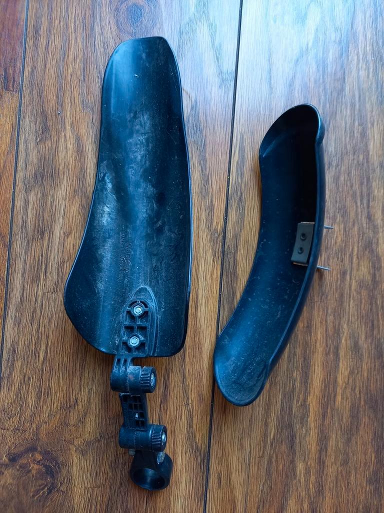 2 spatbordjes van kinderfietsen. De kleine is van een klein fietsje. Andere volgens mij van een kinder mountainbike. Verder geen i