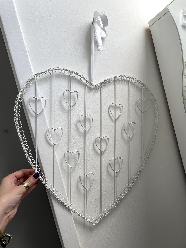Hartvormig fotolijstjes; foto''s kunnen in de hartjes geklemd worden. Voor 11 foto''s. 45 X 45 cm.