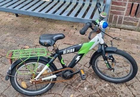 Leuke kinderfiets met 16 inch wielen. De fiets is in gebruikte staat, heeft buiten gestaan dus met de nodige roest, maar een prima