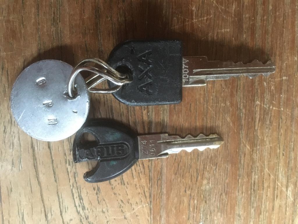 Fietsslot sleutels gevonden op donderdag 20.11 Avond in muiderstraat ter amsterdam op de stoep voor hifi solutions winkel tegenove