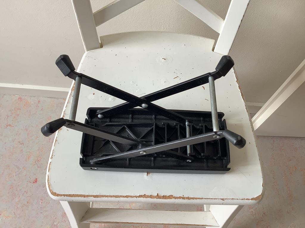 Zet je voet wat hoger zodat je comfortabel gitaar kan spelen. Doe hem weg want ik heb er niks aan. Alleen ophalen