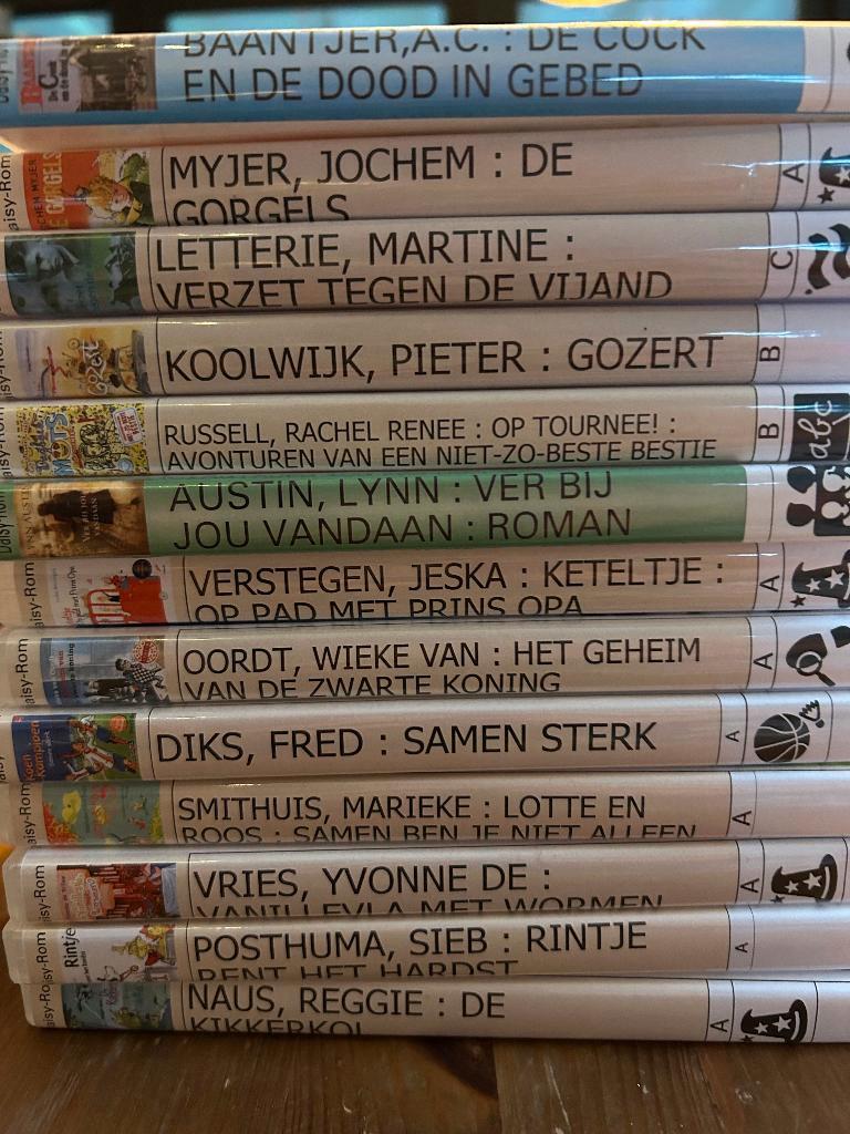 Kinder en volwassen luisterboeken op daisy-rom voor mensen met dyslexie. Op te halen in valkenswaard, deventer of delft. Zie ook m