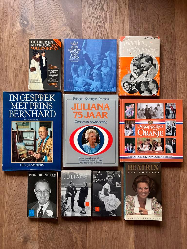 Diverse boeken over het nederlandse koningshuis, waaronder biografieën van prins bernhard, juliana en beatrix. Verschillende titel