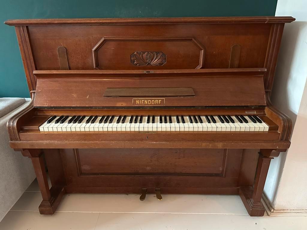 Mooie niendorf piano. Speelt nog goed. Een paar beschadigingen bovenop en mag wel weer eens gestemd worden. Ik heb er altijd met p