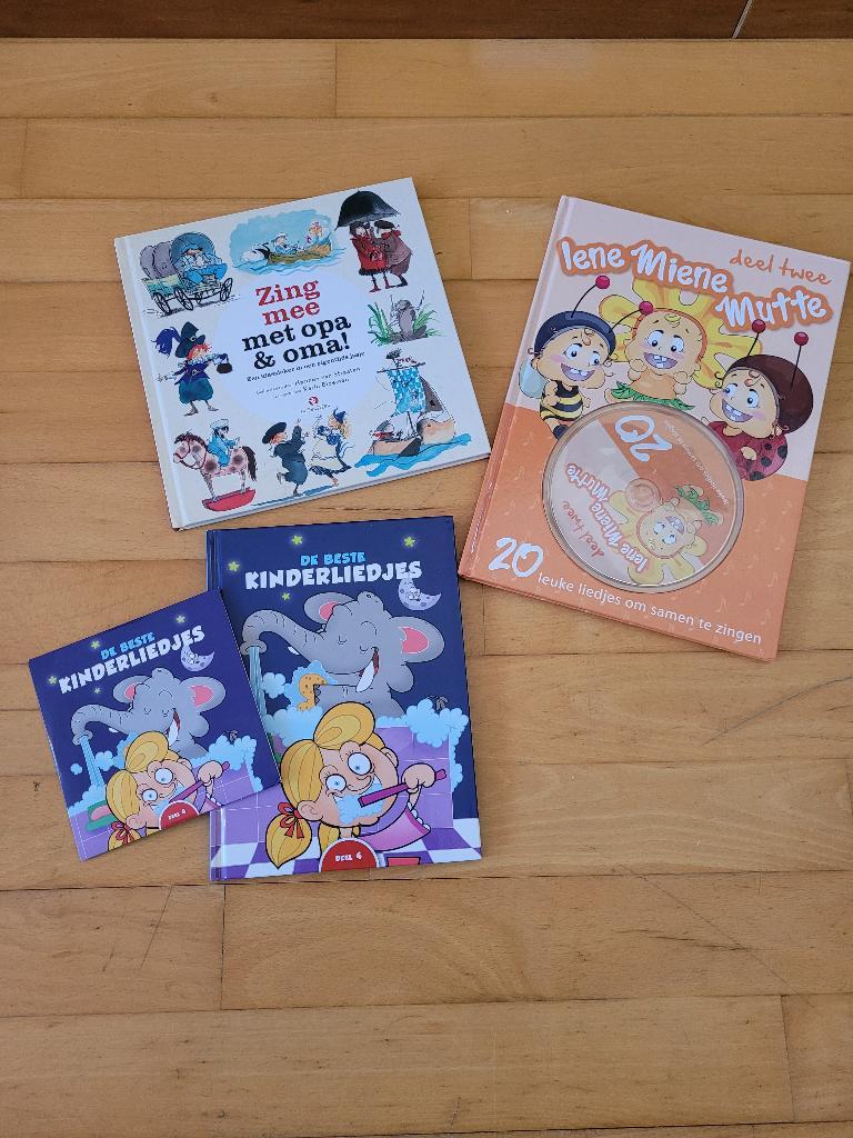 3 meezingboekjes met kinderliedjes met cd''s boekje iene miene mutte is een pagina gescheurd en zit het cd houdertje een beetje
