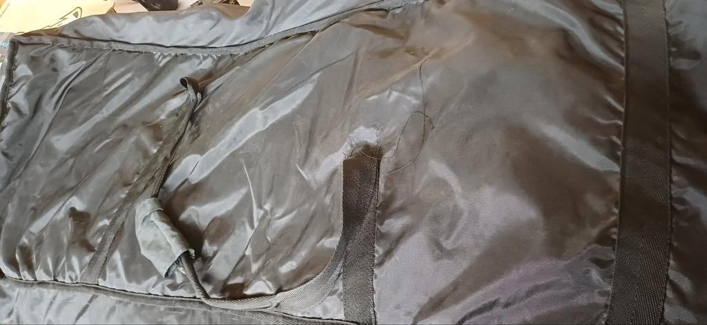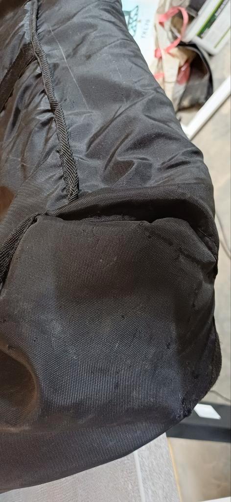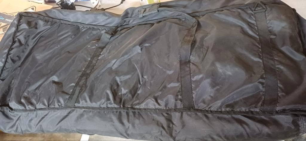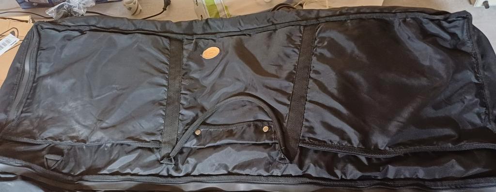 Gig keyboardtas 120x45x18cm met 3 voorvakken, 2 met ritsen, 1 met drukknopen. Gevoerd. Nylon, aantal stiksels los bij draagband en