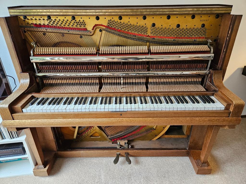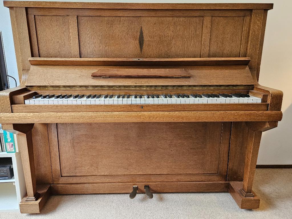 Te koop aangeboden: een prachtige rechtopstaande erard bernard piano, serienummer 82693, gebouwd rond 1900–1905. Historisch merk: