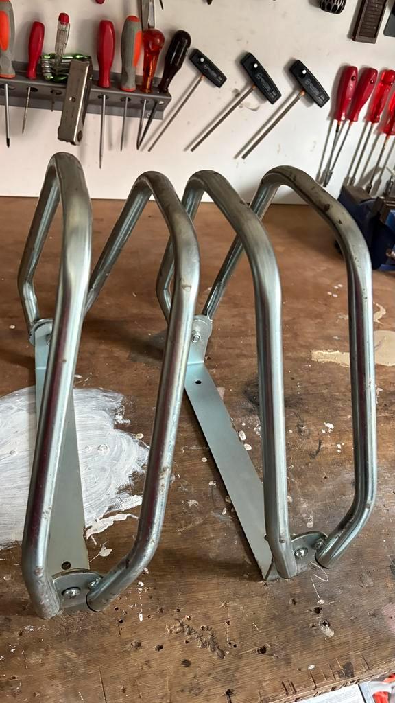 Fietsensteun voor het stallen van 2 fietsen. Gebruikt, maar nog in goede staat. Ideaal voor in de garage, schuur of tuin. Stevig e