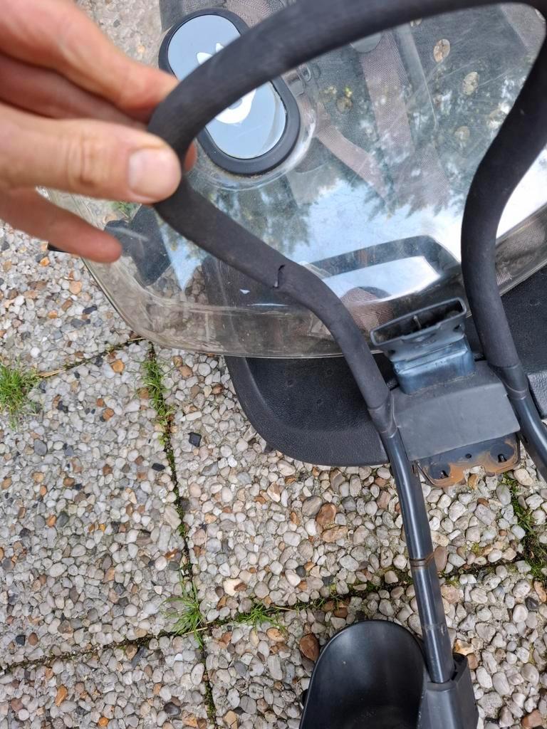Gebruikte staat, maar prima nog te gebruiken. Heeft een breukje in het handvat voor het kindje, maar heeft geen invloed op stevigh