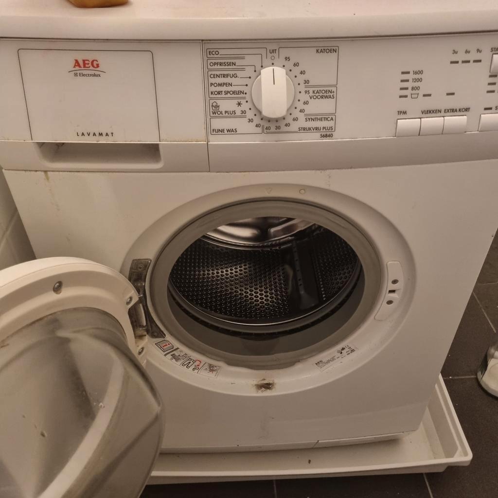 Gebruikte aeg wasmachine, voorlader model. Het rubber bij de deur is gescheurd (zie foto) waardoor hij lekt! Hij werkt naar behore