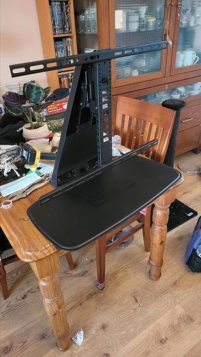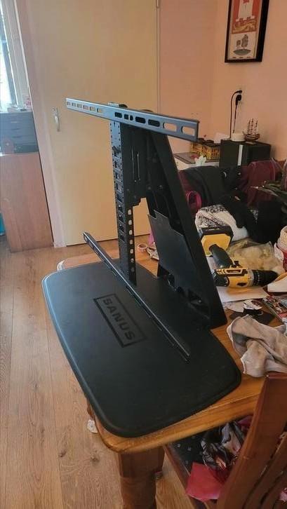 Het is tv standaard voor grote tv. Hij kan staan op een tv meubel. Ik doe hem weg omdat we deze niet gebruiken.