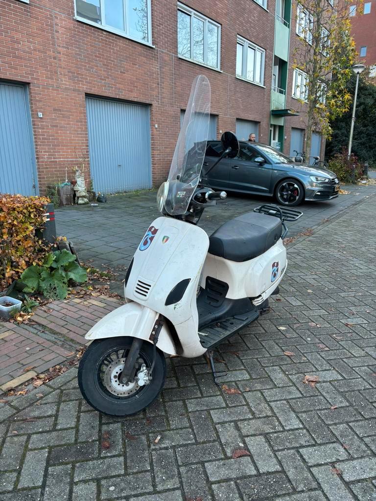 Scooter heeft geen wok en is een geel kenteken. Dit is echt een projectje voor iemand die handig is, want de scooter rijdt momente