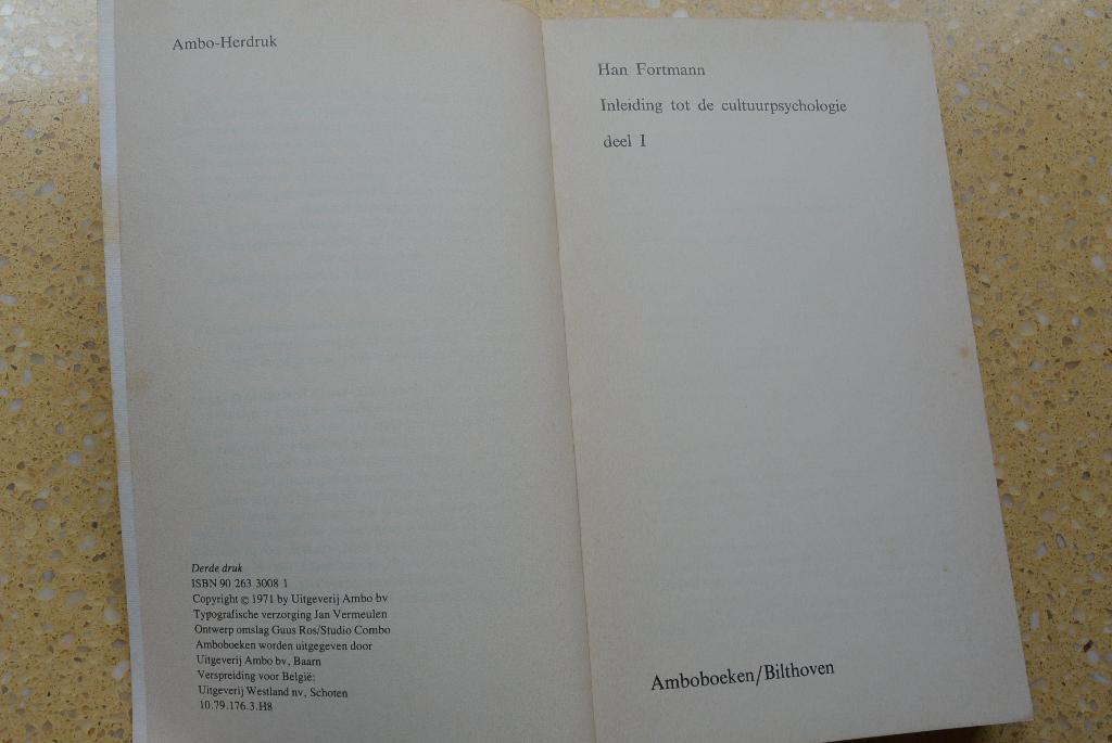 Inleiding tot de cultuurpsychologie door: han fortmann amboboeken isbn 9026330081 - 1971 in goede staat, beetje lichtverkleuring o