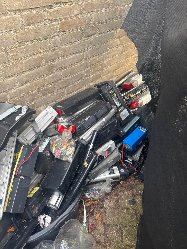 Gratis af te halen: partij gebruikte fietsaccu''s. Ideaal voor recycling van de materialen of voor het hergebruiken van onderde
