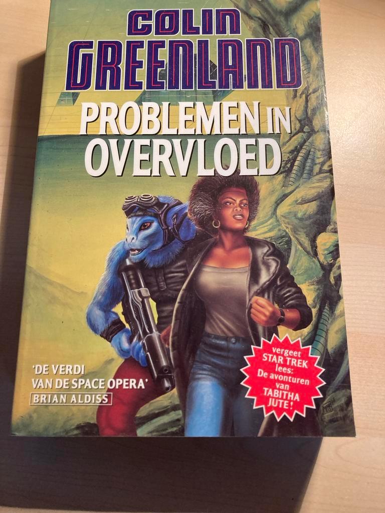 Sciencefiction boek ''problemen in overvloed'' van colin greenland. Een spannend verhaal vol avontuur en intrige. In goede s