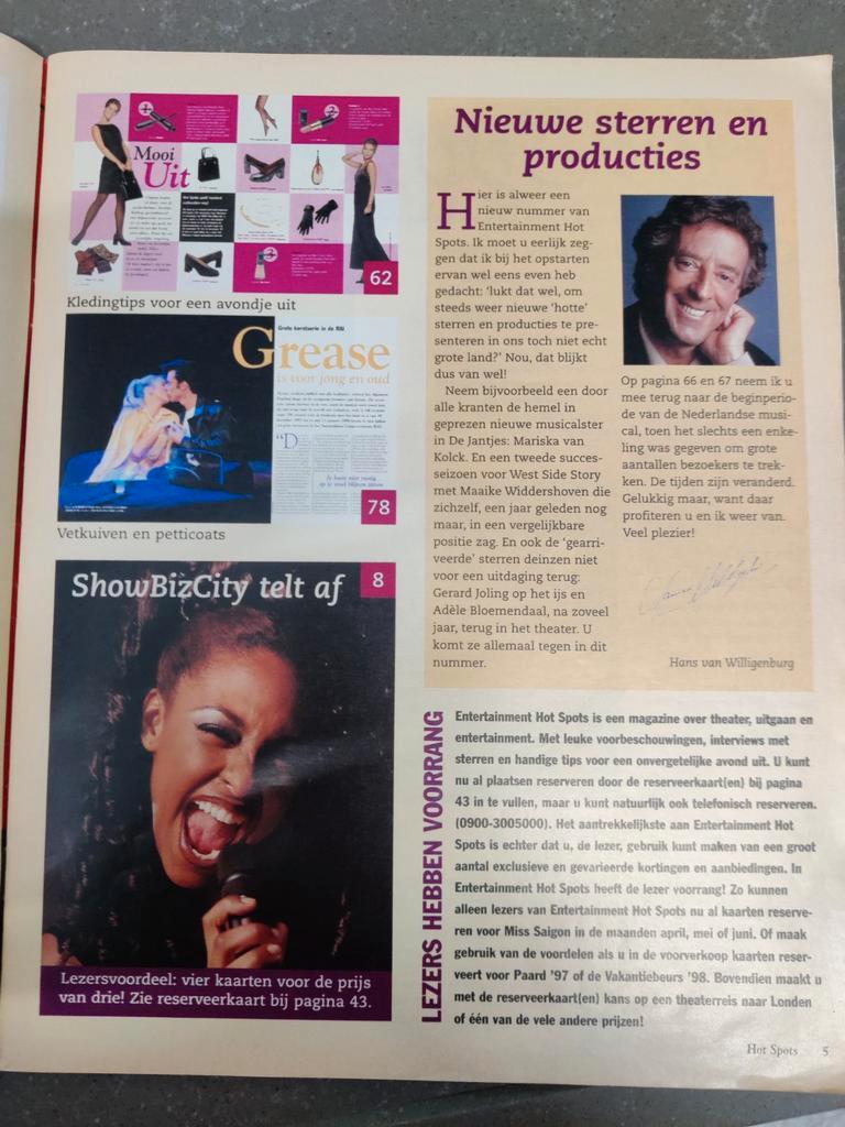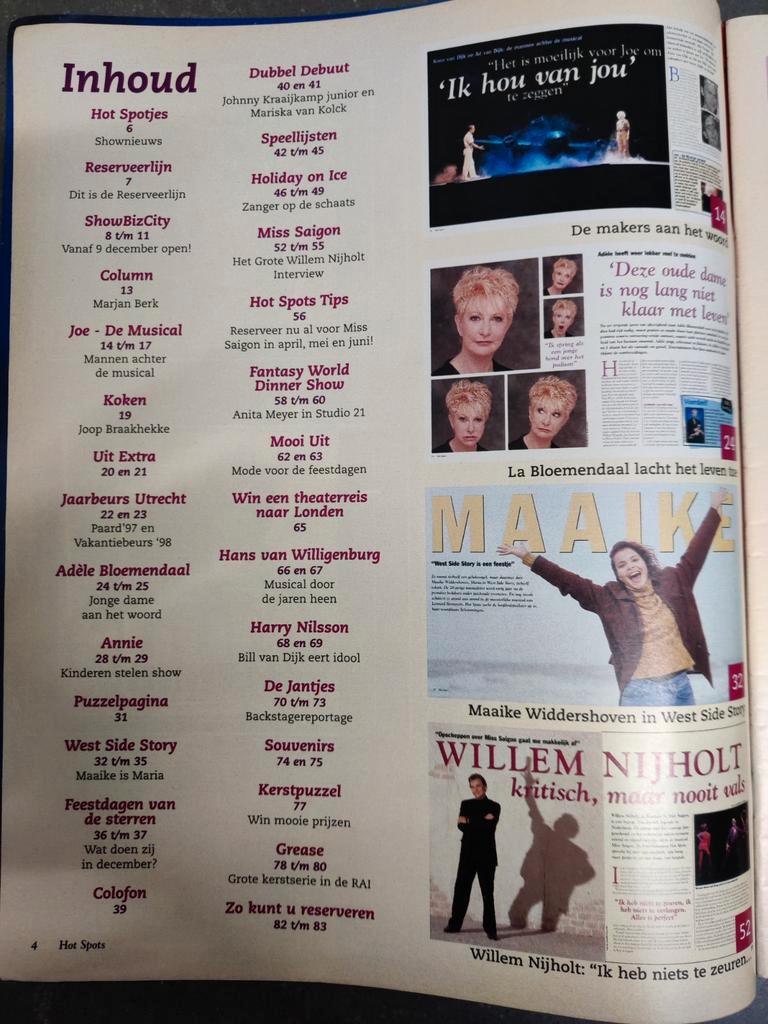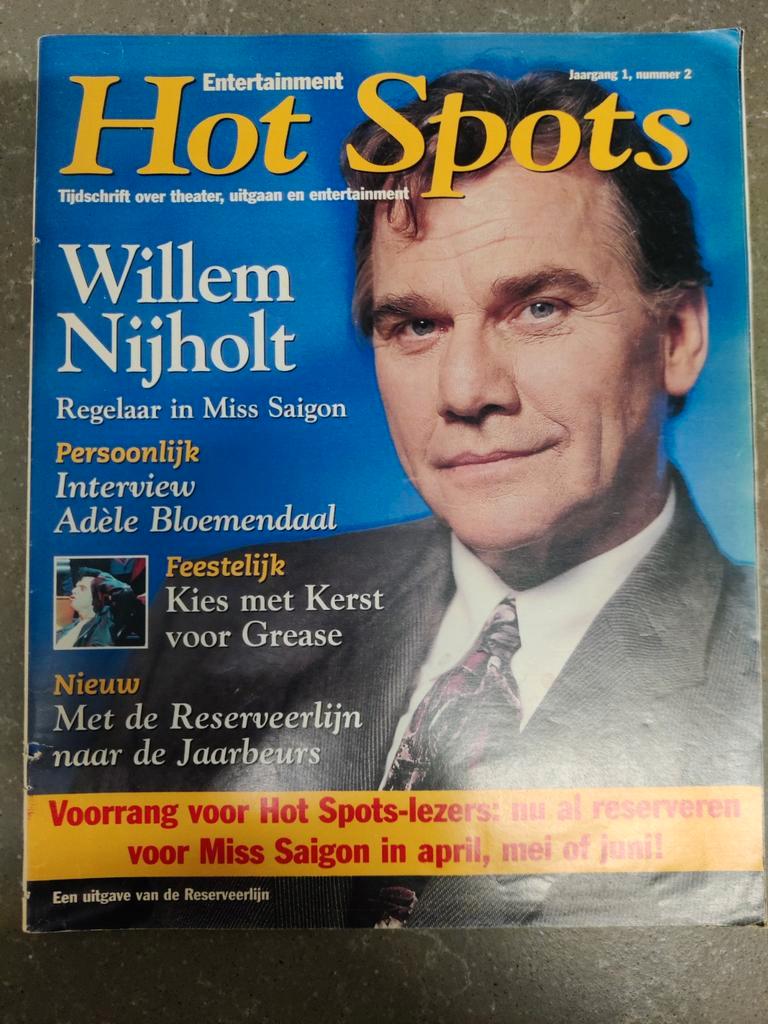 Hot spots tijdschrift over theater, uitgaan en entertainment met willem nijholt op de cover. Mooie weergave van het entertainment