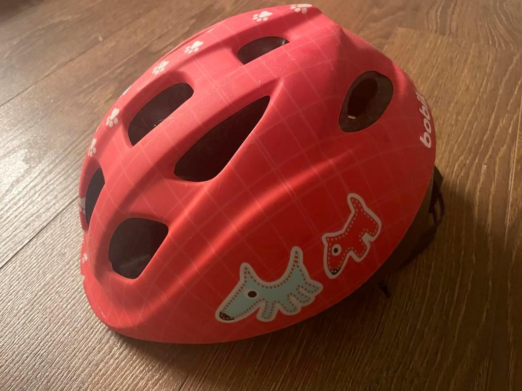 Leuke fietshelm voor een kind van ongeveer 5 jaar. De maat is niet bekend, maar de helm is geschikt voor een hoofdomtrek die past