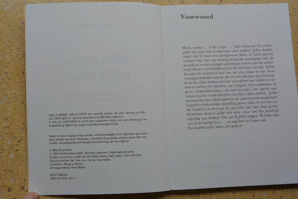 Hallo mama, hallo papa! De opwindende belevenissen van het eerste levensjaar door: willy breinholst mondria uitgevers isbn 9789065