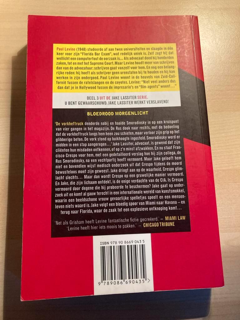 Spannende thriller van paul levine, ''bloedrood morgenlicht''. Jake lassiter, advocaat, raakt verwikkeld in een complexe zaa