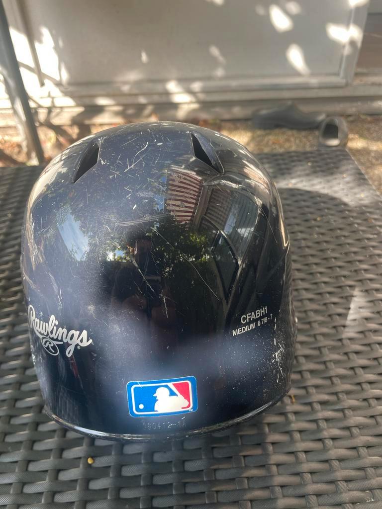 Gebruikte rawlings baseball helm, maat medium (6 7/8 - 7 1/8). Heeft gebruikssporen maar is nog in goede staat. Ideaal voor jonge