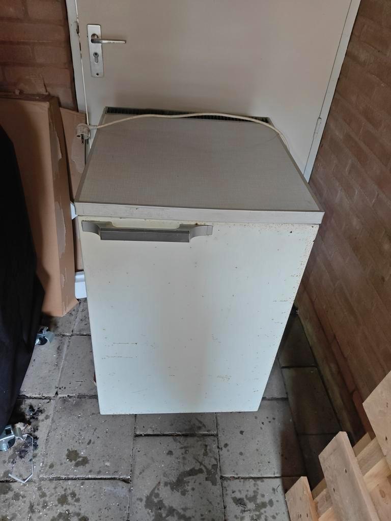 Een gebruikte, vrijstaande koelkast met vriesvak. Ideaal voor een studentenkamer, garage of als extra koelruimte. De koelkast is v