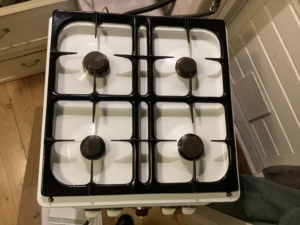 -alle 4 gaspitten werken prima. -De achterdeksel is los maar bij ons stond hij iets naar achteren geleund tegen de muur en is als
