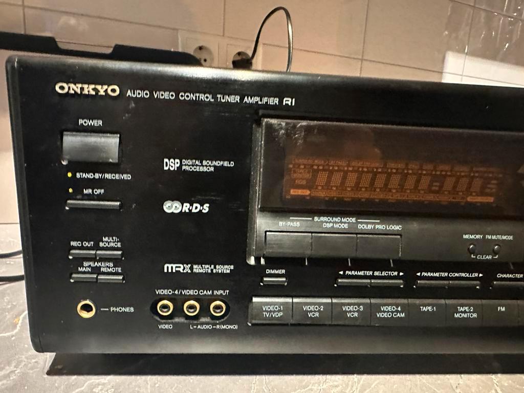 Onkyo tx-sv727r surround receiver, ideaal voor iemand die graag repareert. Het standby-lampje blijft branden, wat waarschijnlijk o