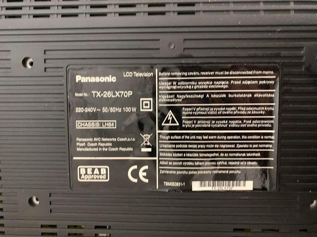 Panasonic vieja lcd tv, model tx-26lx70p. Afmetingen ongeveer 100x60 cm. Chassis lh64. Kleur zwart gratis ophalen (of voor een lek
