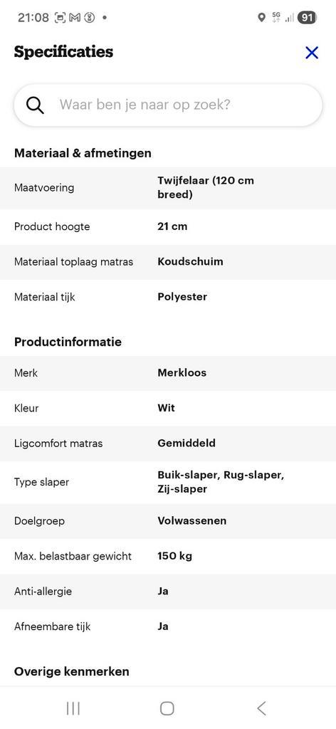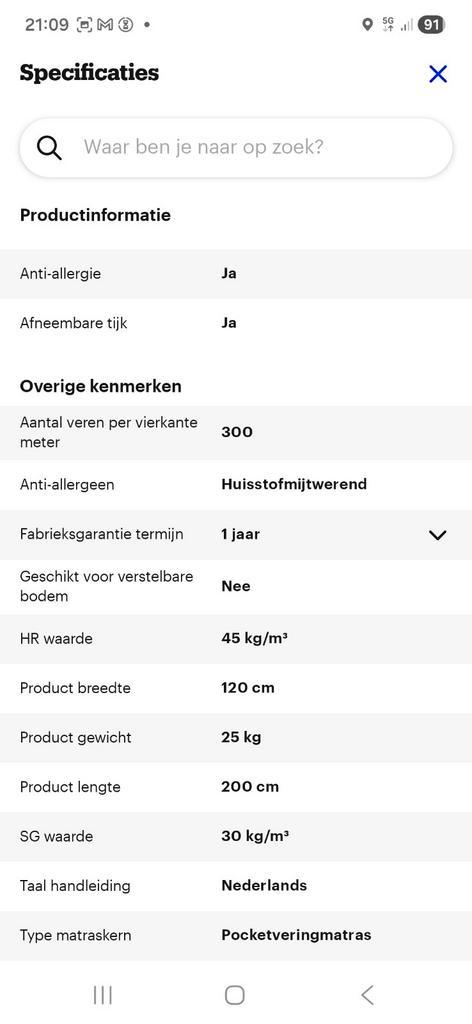 Zo goed als nieuw, pocketvering matras 120x200 merkloos zie specs en kenmerken zelf ophalen gratis ( of mooie bos bloemen ... )