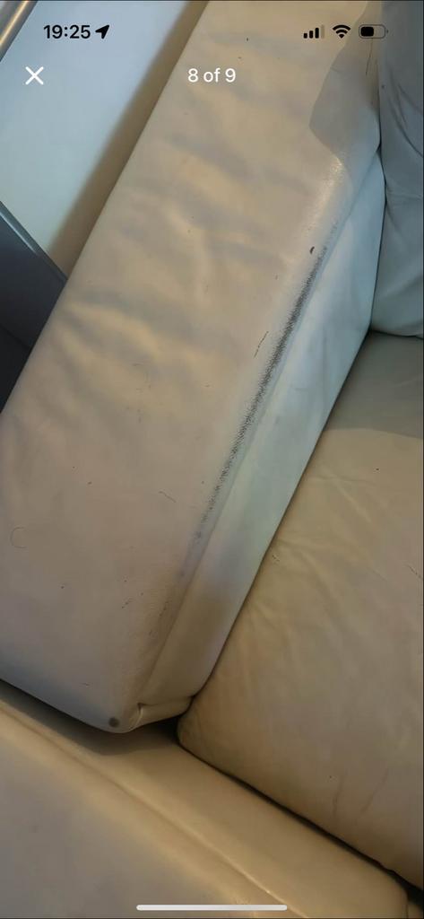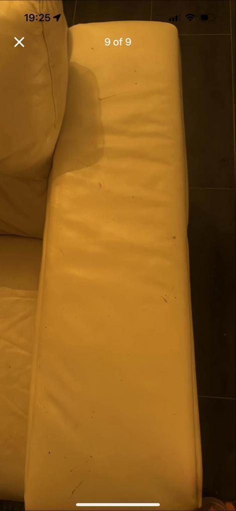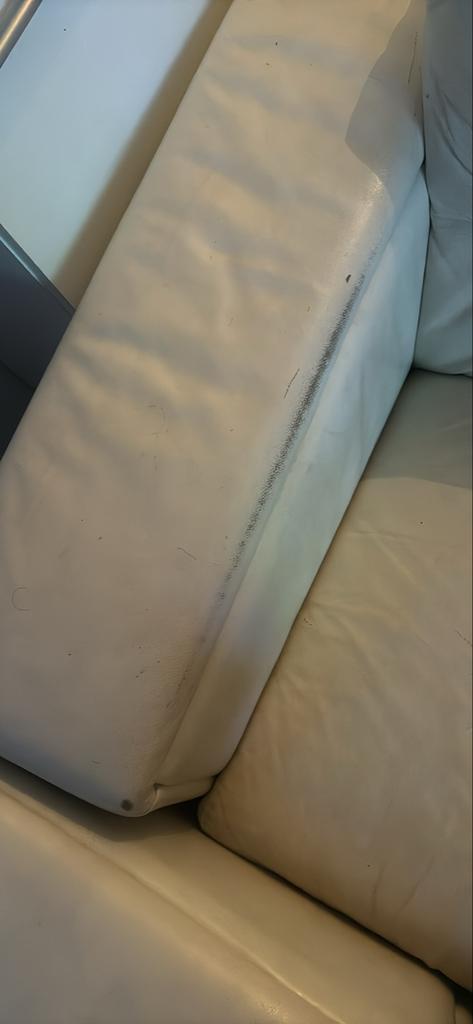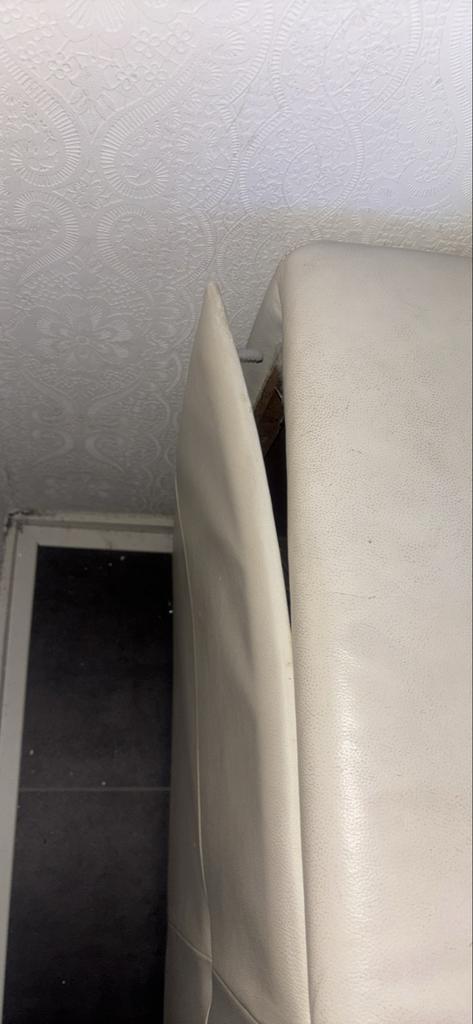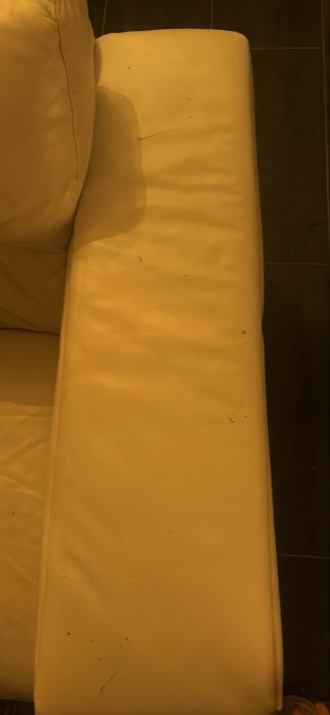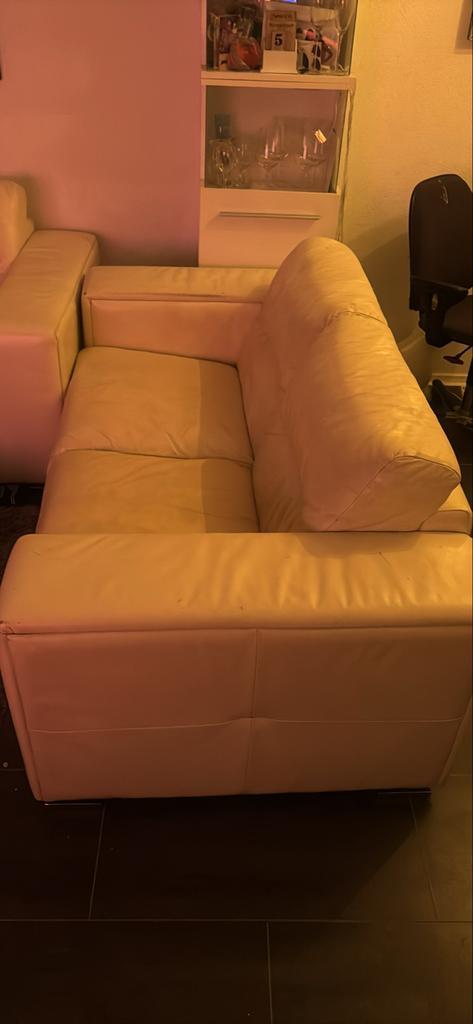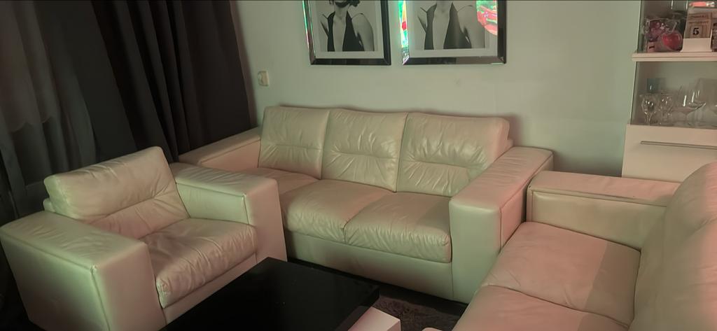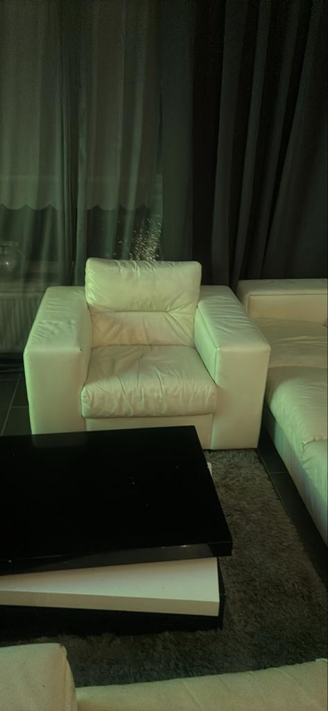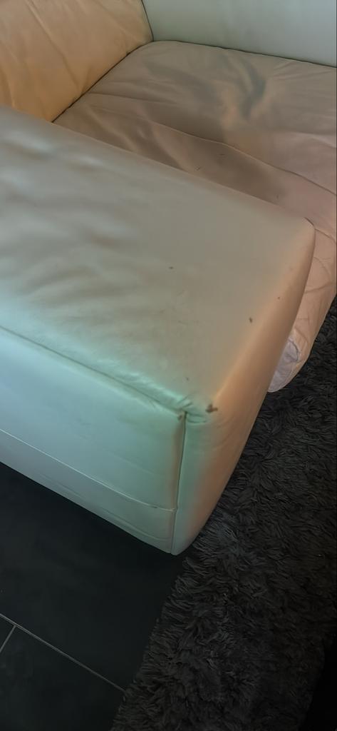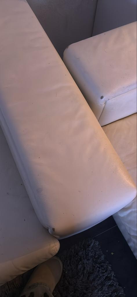 Witte leren bankstel - vandaag ophalen - 100 % leren kwaliteit - kan opgepimpt worden voor tijdelijk gebruik. Afmetingen: kleinste