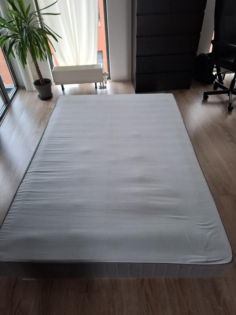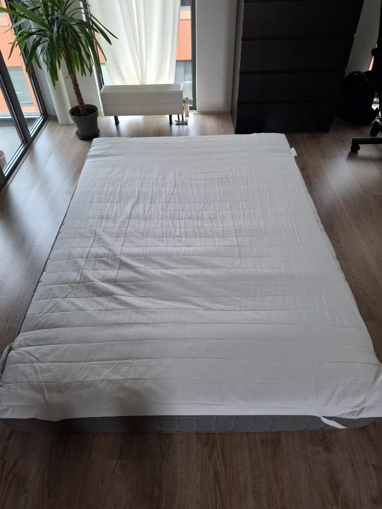 Dubbele matras met afmetingen 160x200 in zeer goede staat en de hoes is bijna nieuw, allemaal van ikea. De matras is van het merk