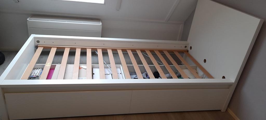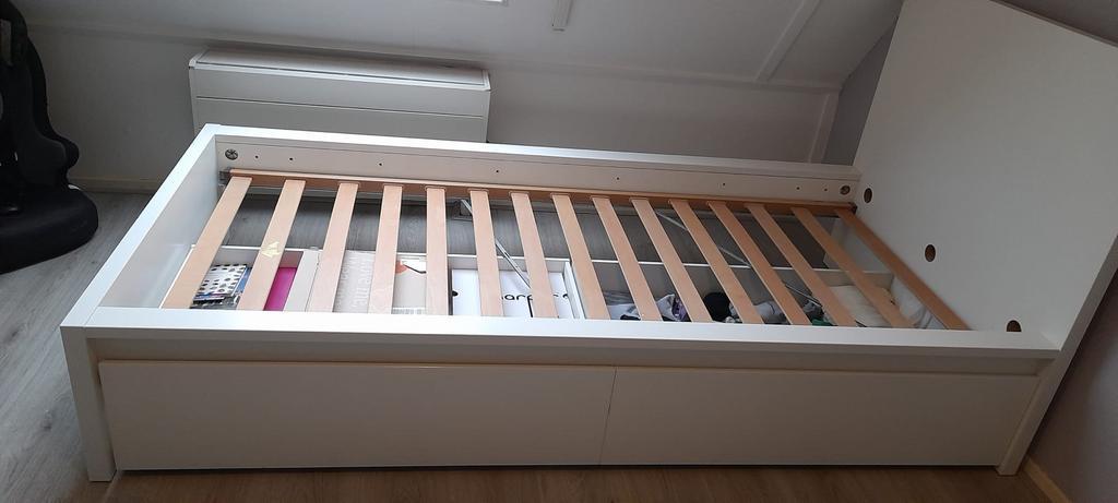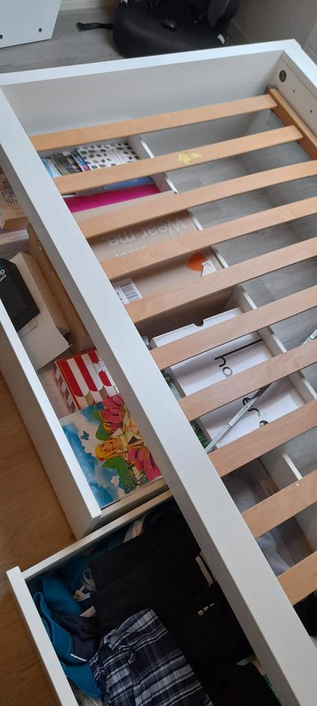 Gratis bedframe (zonder lades) in goede staat. Ideaal voor een slaapkamer. Het bedframe is stevig en kan nog prima een ronde mee.