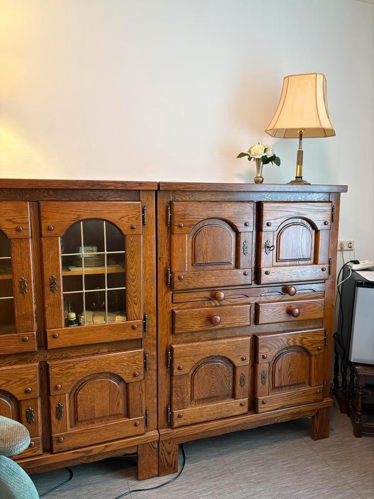 Gratis op te halen: massief eikenhouten kast met een hoogte van 150 cm. De kast is stevig en biedt veel opbergruimte. Ideaal voor