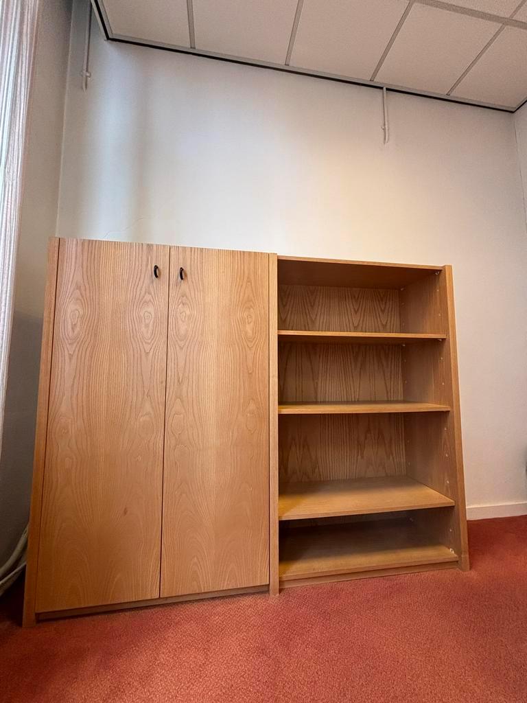 Gratis ophalen! Mooie houten kast met een gedeelte met deuren en een gedeelte met open vakken. Ideaal voor opslag en presentatie.