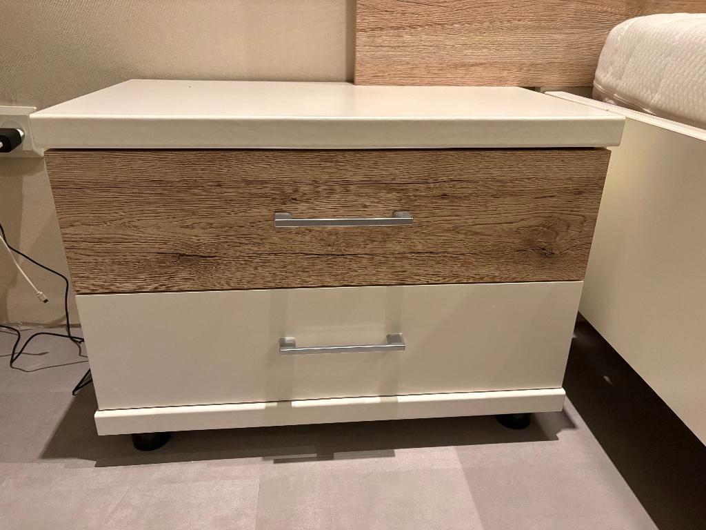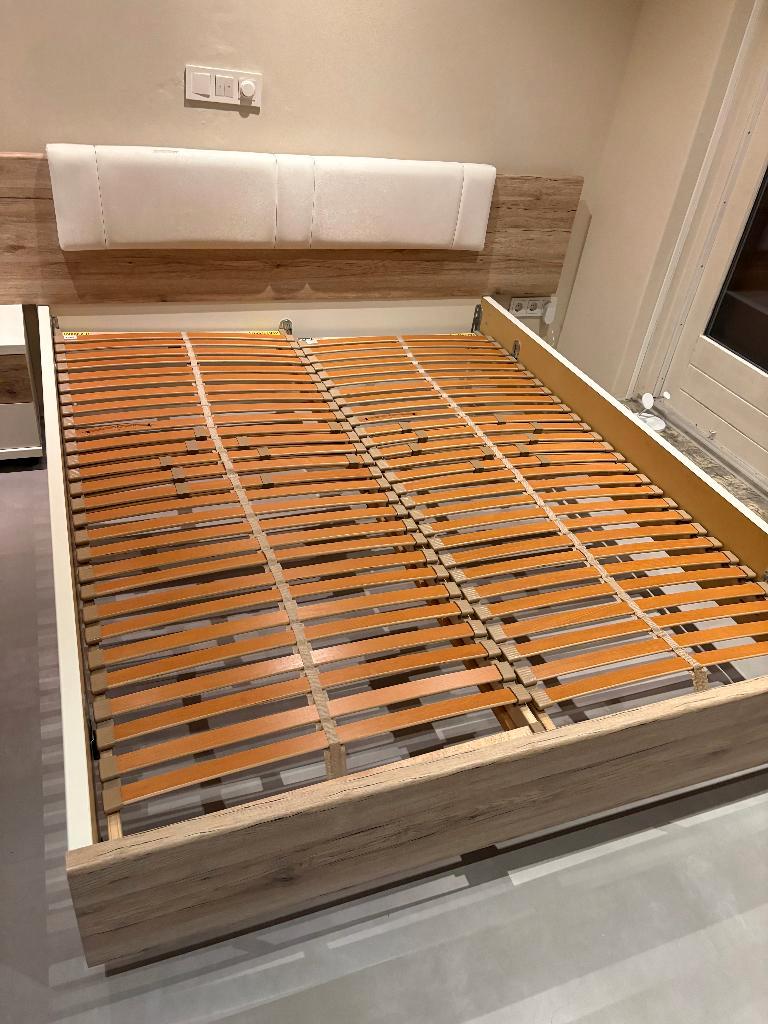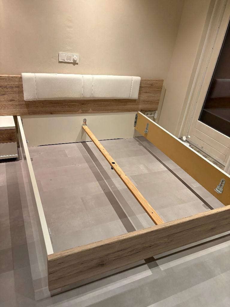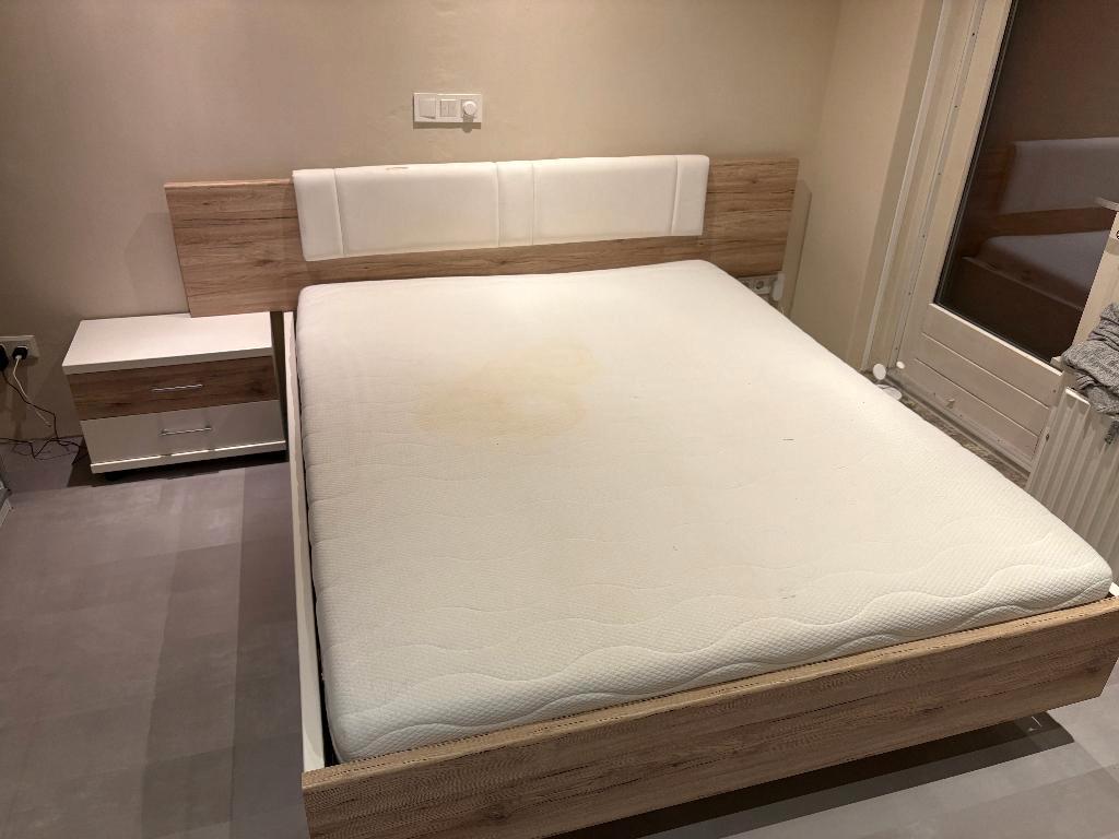 Gratis af te halen: een compleet tweepersoonsbed (160 x 200 cm) inclusief matras en twee bijpassende nachtkastjes. Het bed is al g