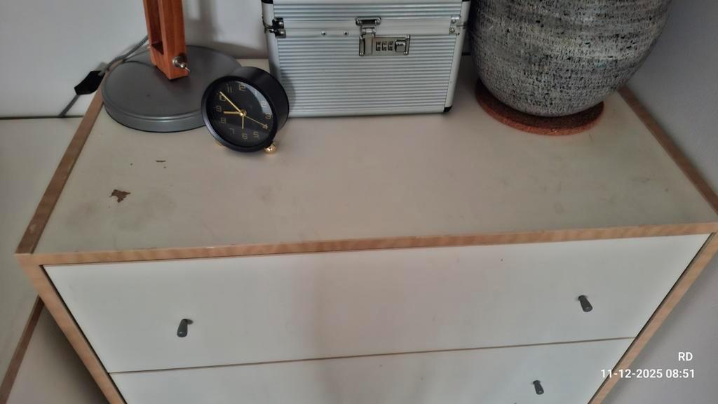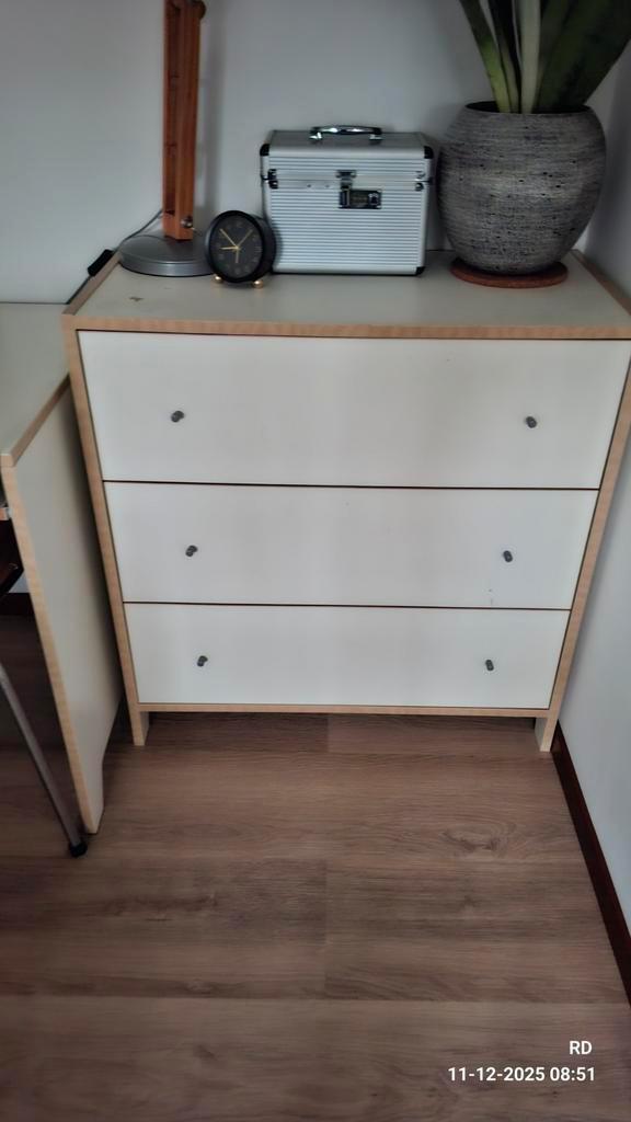 Mooie witte ladekast met 3 lades. De kast is in gebruikte staat en heeft een breedte tussen de 50 en 100 cm en een diepte tussen d