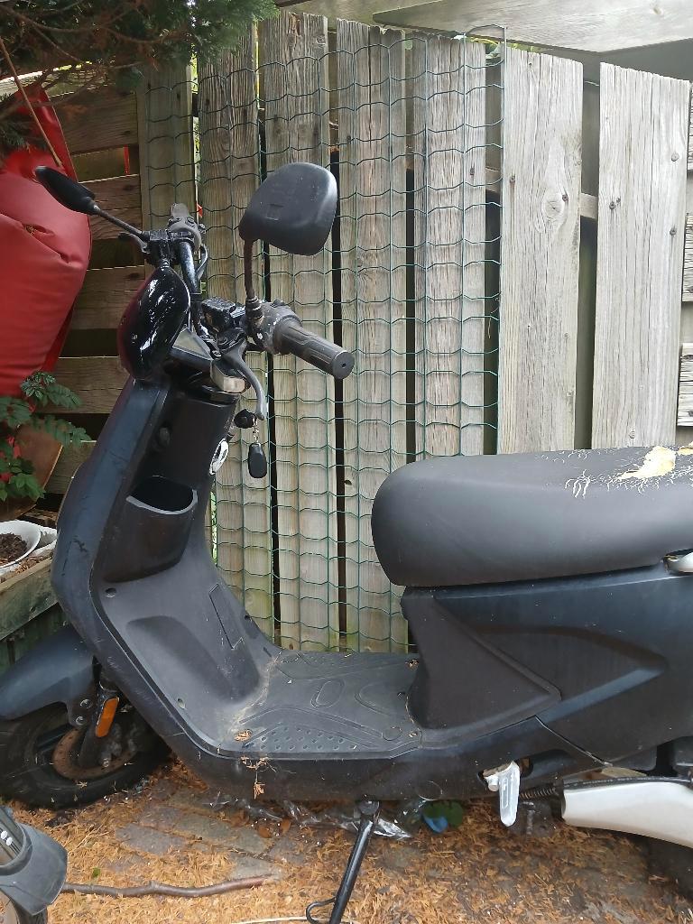 Gratis op te halen. De scooter is 4 jaar oud. Rijdt nog wel, maar de accu is niet heel goed meer. Ook is het zadel beschadigd en h