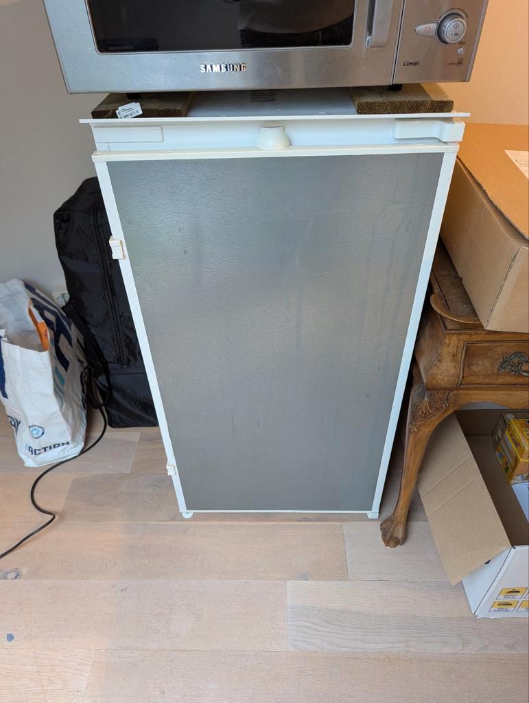 Inbouwkoelkast te koop. Afmetingen: 103 cm hoog en 54 cm breed. De koelkast werkt nog prima, maar is een ouder model.