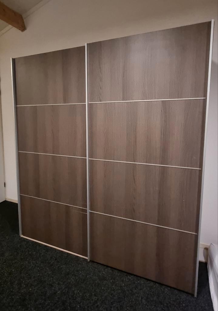 Gratis! Voor 16 dec ophalen!! Ophalen en zelf uitelkaar halen donkerbruine kast met schuifdeuren van leenbakker. (Witte randje lin
