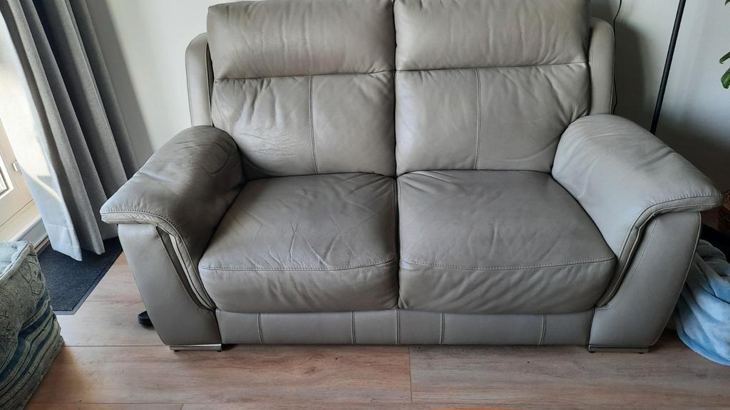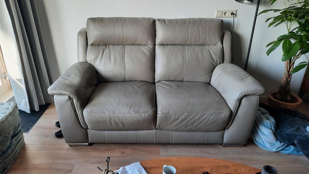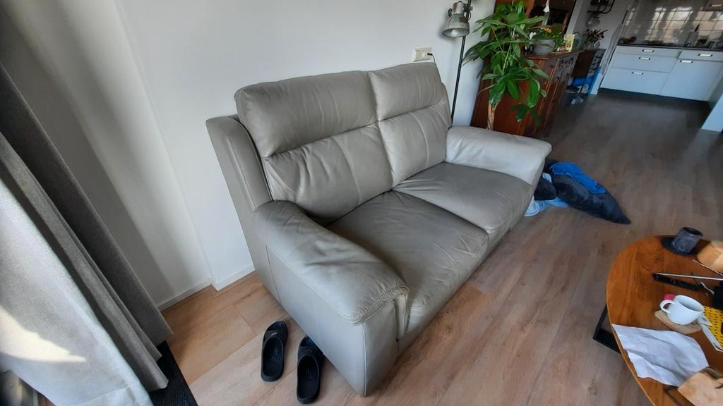 Comfortabele grijze tweezitsbank. De bank is in goede staat en biedt plaats aan twee personen. Ideaal voor een kleine woonkamer of