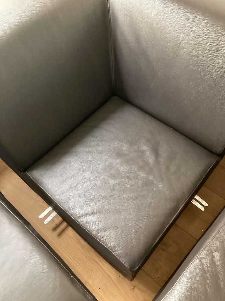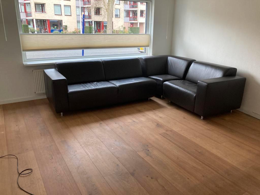 Donkerbruine leren hoekbank moet weg omdat we kleiner gaan wonen. In drie delen uiteen te halen, zie foto. Afmeting lange deel t/m