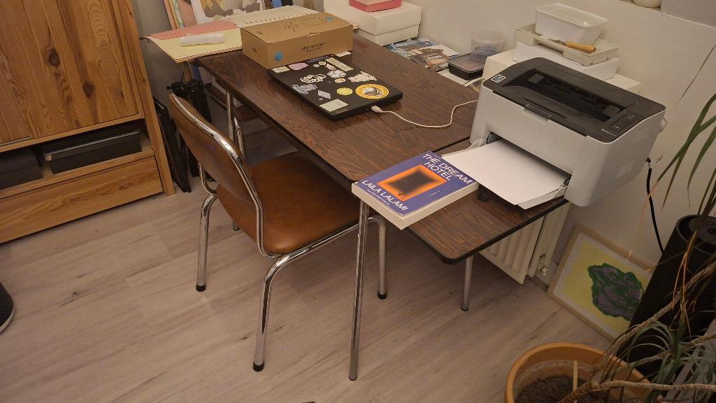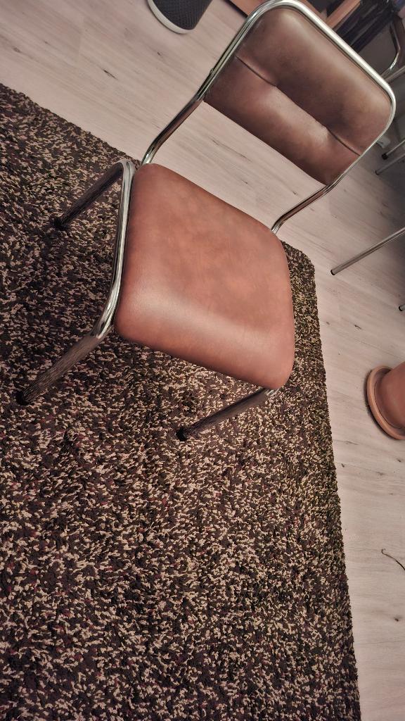 Vanwege een verhuizing zijn de bruine metalen eettafel (uitschuifbaar) met twee bijhorende leren/metalen stoelen op te halen in oo