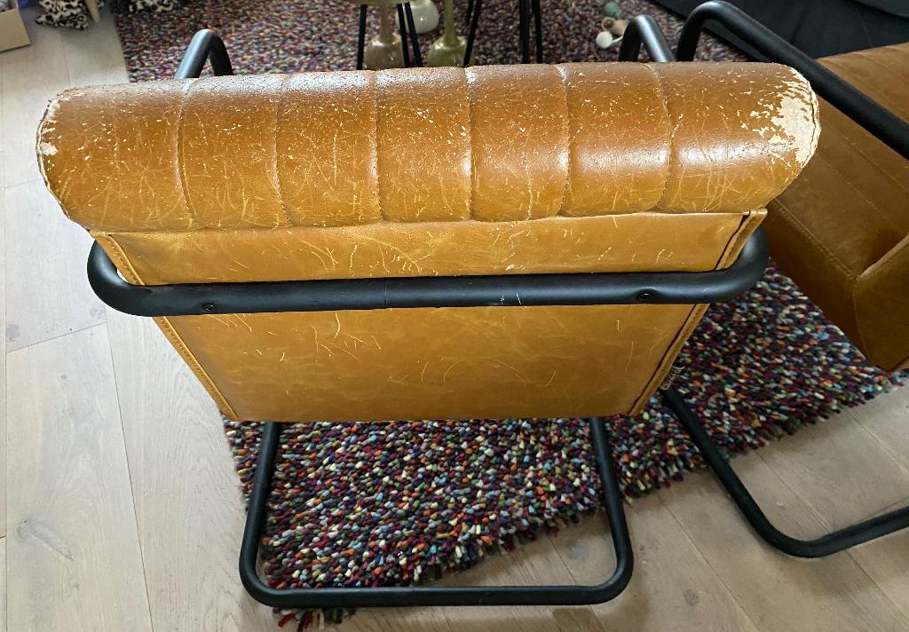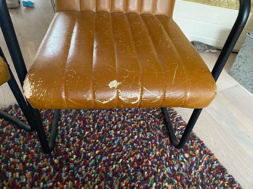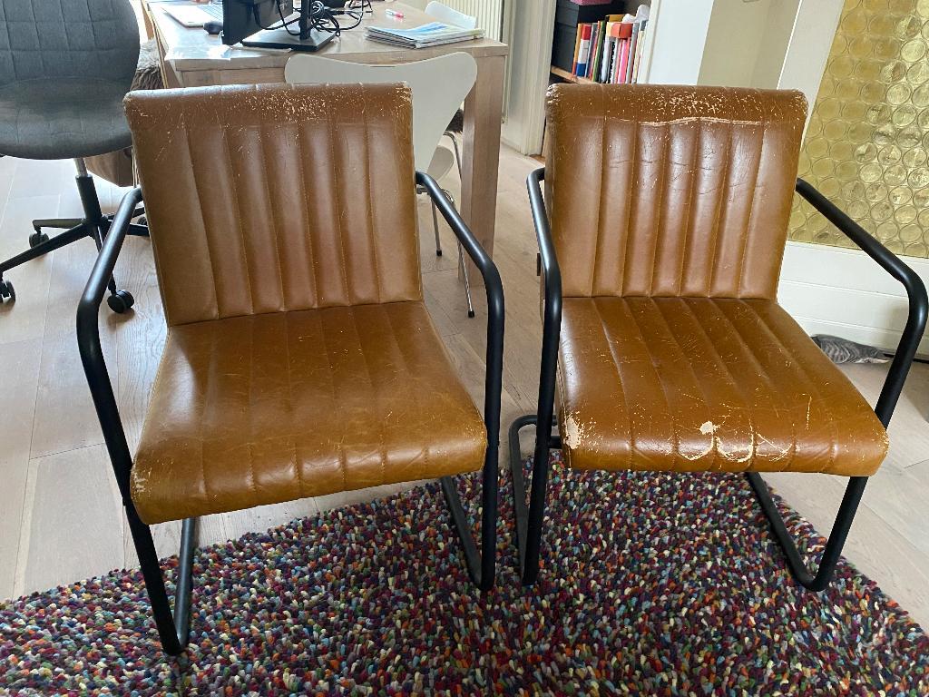 Gratis af te halen: twee stoelen van dutch bone helaas door de kat flink toegetakeld maar te goed voor het grof vuil. Bv met schap
