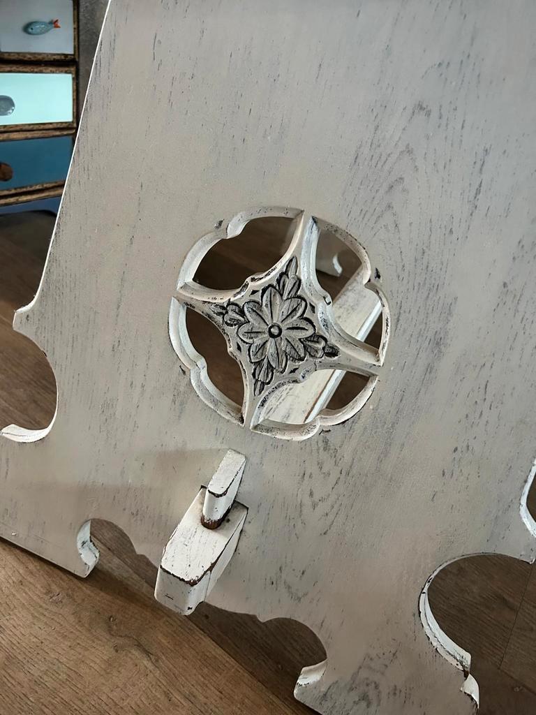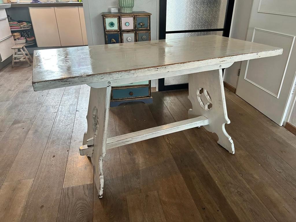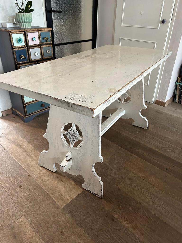 Mooie houte tafel. Met prachtig houtsnijwerk aan de zijkanten. Kan gebruikt worden als bureau maar ook als kleine eettafel. Afmeti