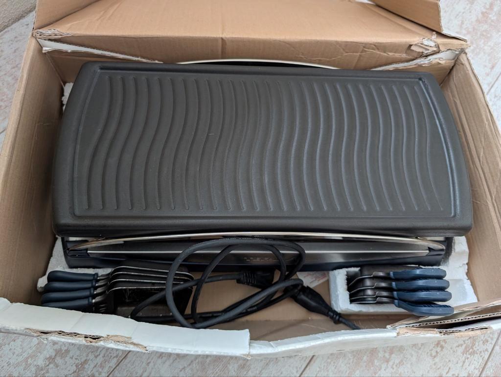 Gourmetstel gratis af te halen wegens aanschaf nieuwe. De pannetjes hebben geen anti aanbaklaag meer maar doen het nog wel.